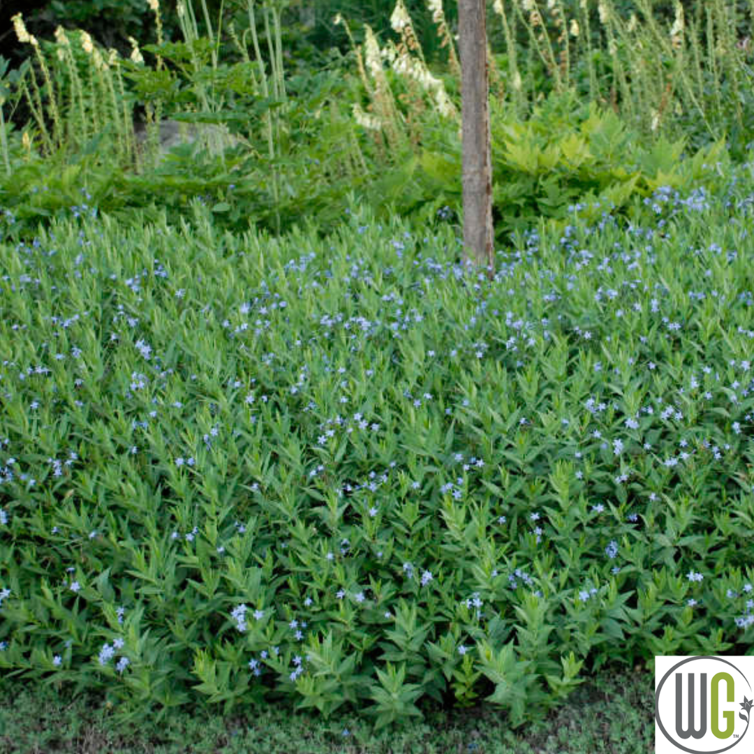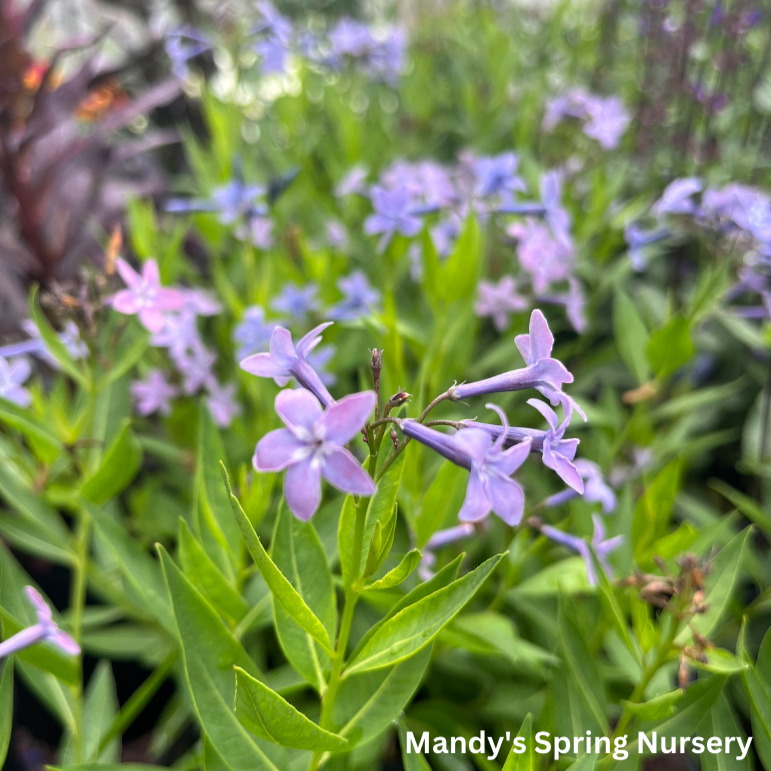 The bright green, compact, slowly spreading foliage forms the perfect background for the delightful blossoms and then turns a rich shade of yellow in fall. Amsonia adds a billowy, finely textured element to the landscape. It grows into a dense mass, much like a small shrub.