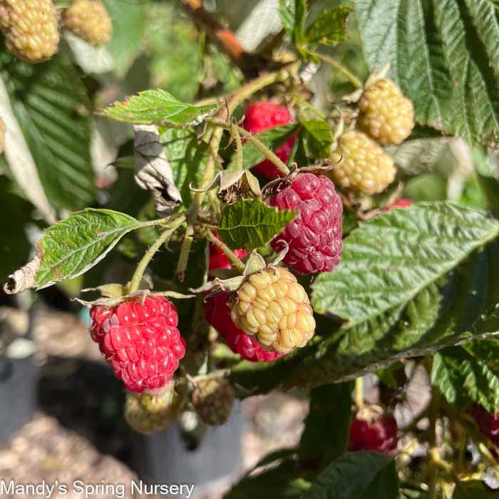 This is a University of Maryland variety that has proven to be one of the most productive varieties for the East and Midwest. It is considered to be the new standard for everbearing varieties. Fruit is larger than 'Heritage', more productive and the taste is very flavorful. 'Caroline' is vigorous and more tolerant of root rot and yellow rust than 'Heritage'. Fruits earlier than 'Heritage'. Leaf coverage reduces sunscald on berry.