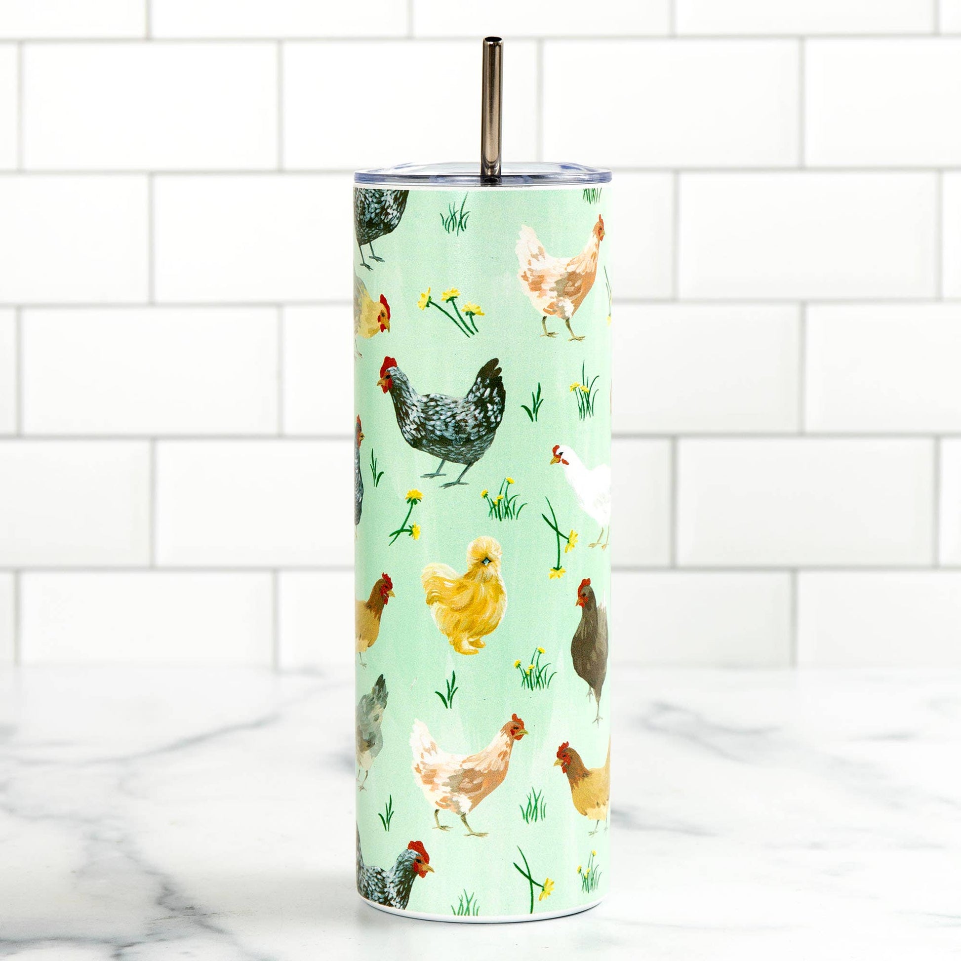 Read moreThe Chicken Meadows 20oz Stainless Steel Skinny Tumbler is a farm-fresh favorite for anyone who loves barnyard charm! Featuring hand-painted hens and roosters roaming a sunny meadow, this tumbler brings a touch of rustic whimsy to your daily routine. Crafted from double-walled stainless steel, it keeps drinks hot or cold for hours. With a spill-resistant lid and reusable straw, it’s perfect for morning coffee on the porch or staying hydrated while tending the coop. A thoughtful gift for chicken lovers, homesteaders, or anyone who dreams of farm life! Features | Hand-painted design on matte finished tumbler with stainless steel double wall. Stainless steel straw included. Size | 20 oz. Care Instructions | Dishwasher safe