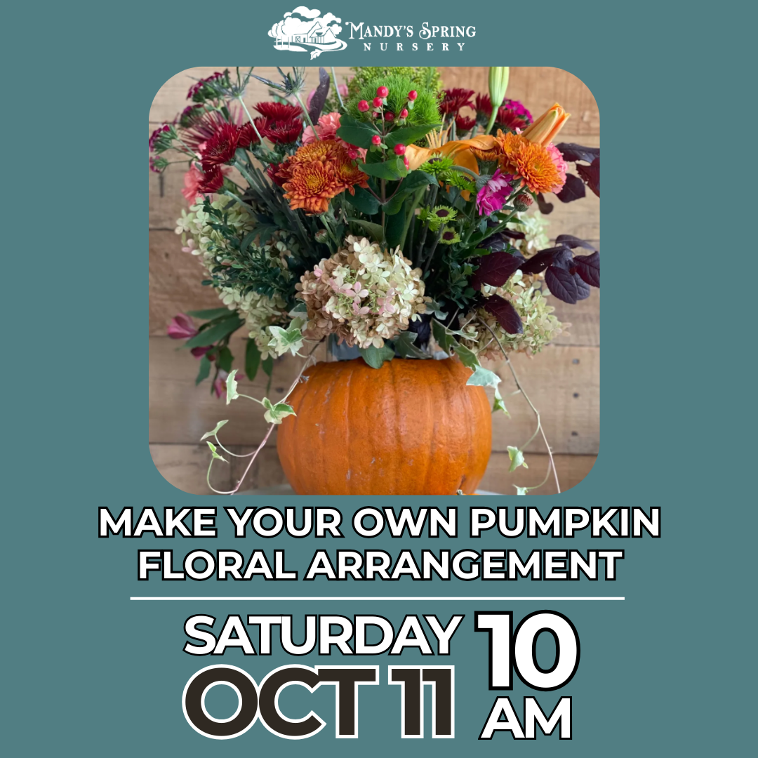 Read moreSaturday, October 11 @ 10am - Join us for a festive workshop where you’ll design your very own pumpkin floral arrangement! Using fresh seasonal blooms, vibrant foliage, and a hollowed pumpkin as your base, you’ll create a unique centerpiece that captures the beauty of fall. Perfect for brightening your home or gifting to someone special, this workshop is a fun way to welcome the season with creativity.