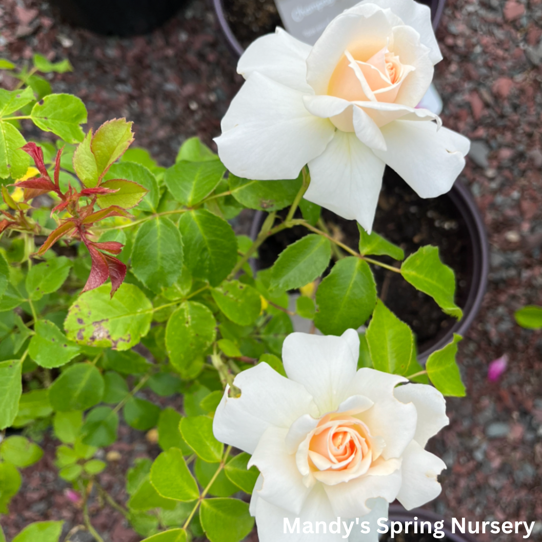 Read moreClusters of soft apricot buds open fully to blooms of antique white with just a hint of apricot before fading to a clear white. Combines beautifully with perennials in a mixed border or plant as a refined low hedge. Disease-resistant medium green foliage. Own root.