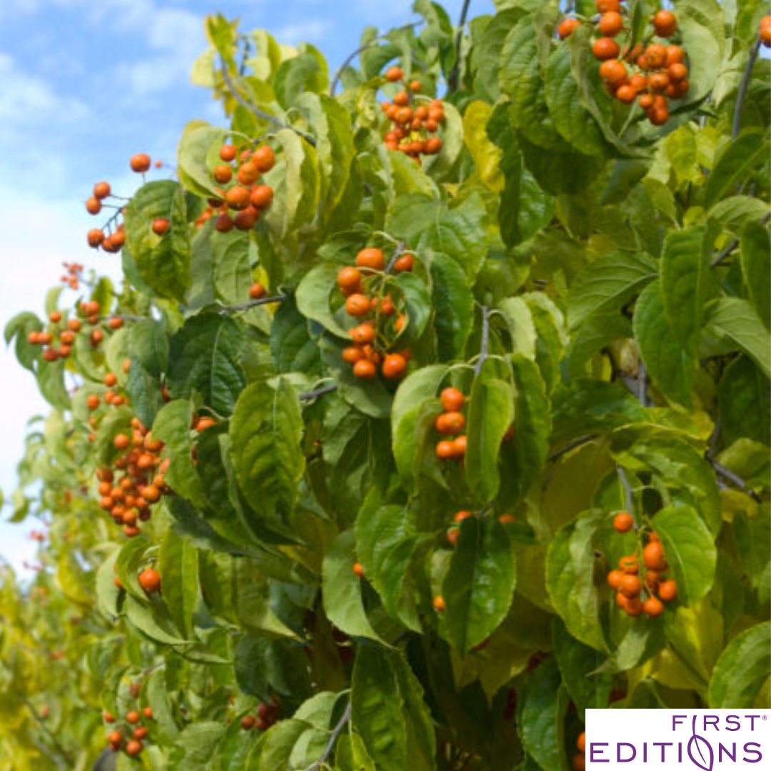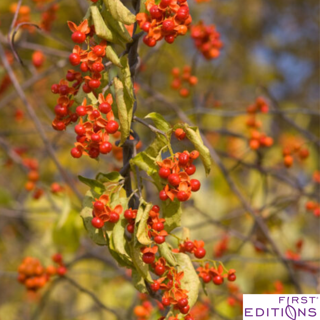Read moreNative Cultivar, A revolutionary breakthrough in bittersweet culture. Imagine never having to wonder if you're buying or selling a male or female plant again. The majority of the flowers formed on Autumn Revolution™ are perfect, meaning that the flower itself has both male and female parts. In other words, you only need one plant to bear fruit. Perhaps because of this unique characteristic the fruit production is absolutely extraordinary and the berry size is twice that of the species, but it is not invasive like the Asian species. Truly an improvement for this beloved native vine. Discovered and introduced by Bailey Nurseries, Inc.