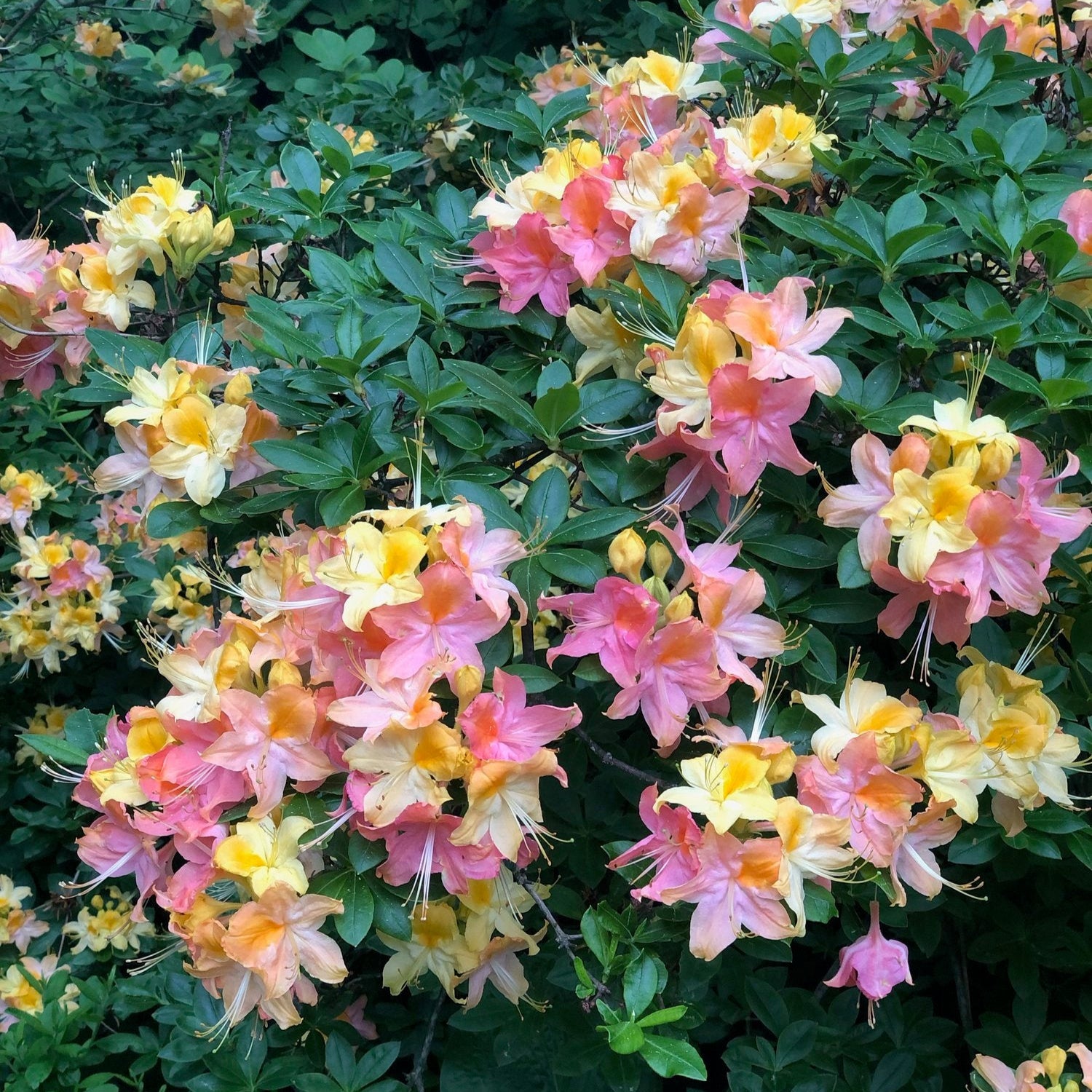 Read morePerfect for use along wood lines, this upright, deciduous selection's numerous flower buds open in early June to reveal yellow flowers that change to orange then pink as they age creating a unique rainbow of color in the landscape. Unique late spring color show attracts loads of native pollinators. Perfect for grouping at the wooded edge of a landscape of for use as a colorful single specimen. Mildew resistant foliage. Easy to grow.