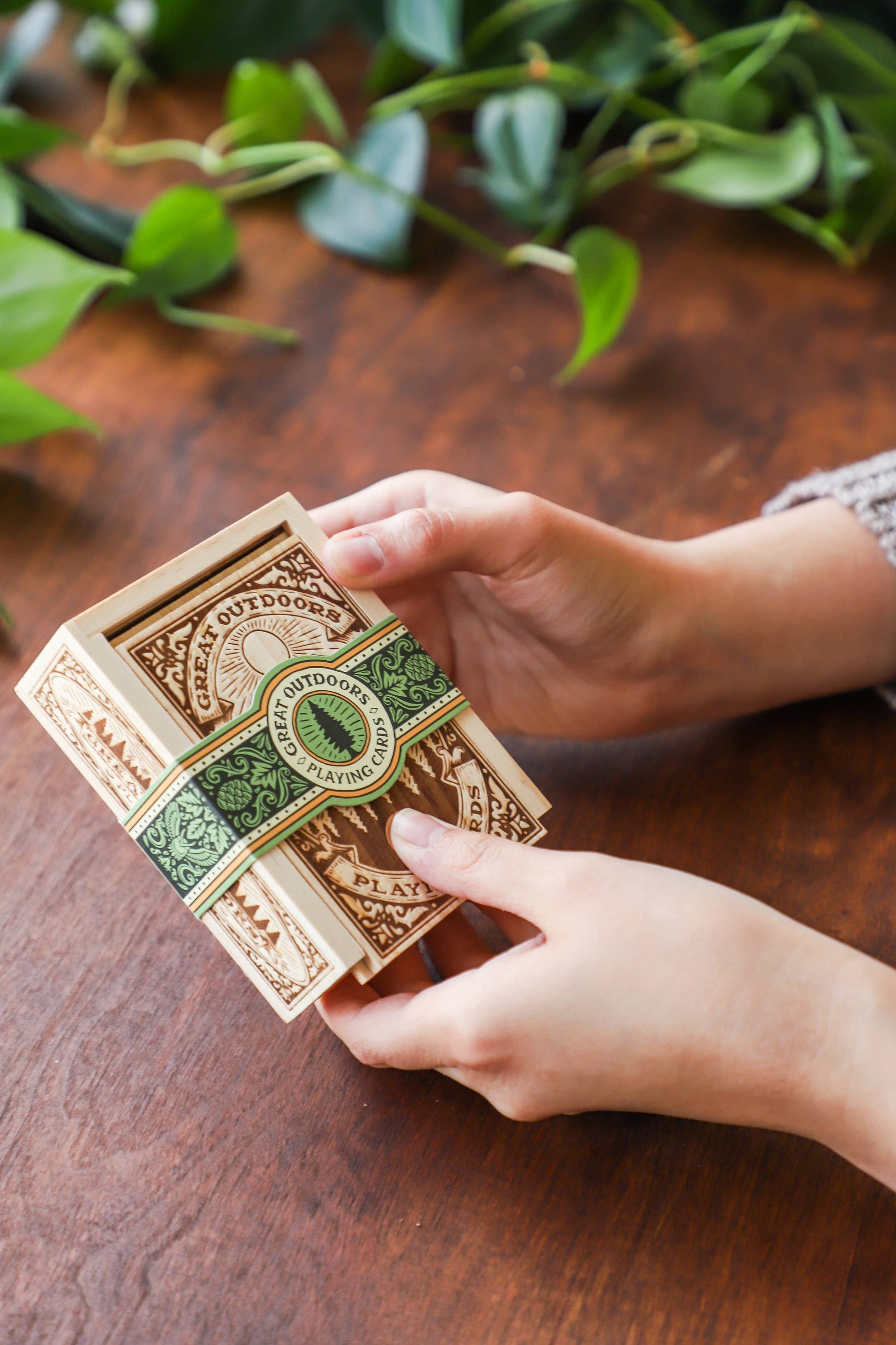 Read moreThese deluxe playing cards bring the beauty of the great outdoors to your fingertips. From the exquisitely detailed card backs to the four suits represented by growing trees, flowing water, majestic mountains, and the expansive sky, every element in this illustrated deck depicts the wonder of nature. Housed in a responsibly sourced wooden box that is handsome enough to leave on the tabletop and light enough to take on-the-go, this set will delight outdoor enthusiasts, art lovers, and card players alike.