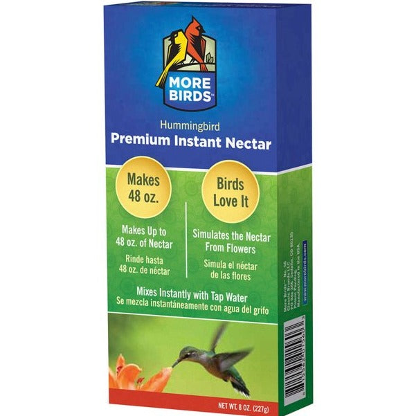 More Birds Hummingbird Premium Instant Nectar - 8 oz. Simulates natural nectar found in flowers Makes up to 48 oz. of nectar. Mixes instantly with tap water.