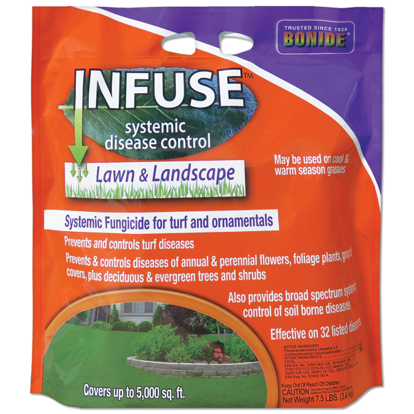 BONIDE Infuse™ Lawn & Landscape Granules control over 30 plant diseases. Provides a broad-spectrum systemic control of soil borne disease as well. Can be used on lawns, annual & perennial flowers, foliage plants, and much more.