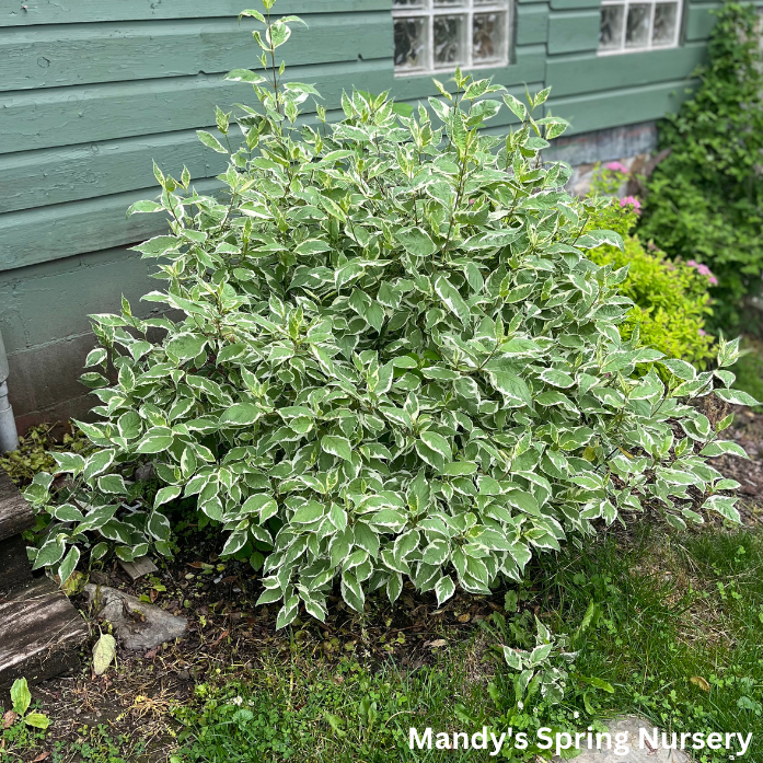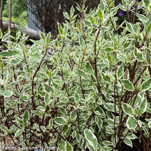 A Bailey Nurseries introduction, this compact selection of variegated dogwood provides beautiful variegated foliage in summer and attractive red twigs in winter.