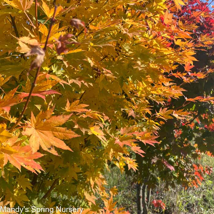 Read moreA showy accent tree with palmate foliage. Emerging red, then turning forest green in the summer, the leaves become brilliant shades of red, yellow, and orange in the autumn. In the spring, clusters of creamy white flowers with purple bracts appear prior to leaf emergence. Prefers cool conditions and won't mind partial shade. Similar in appearance to Japanese Maples (A. palmatum), these trees are an excellent substitute for those in Northern climates where the latter are not hardy.