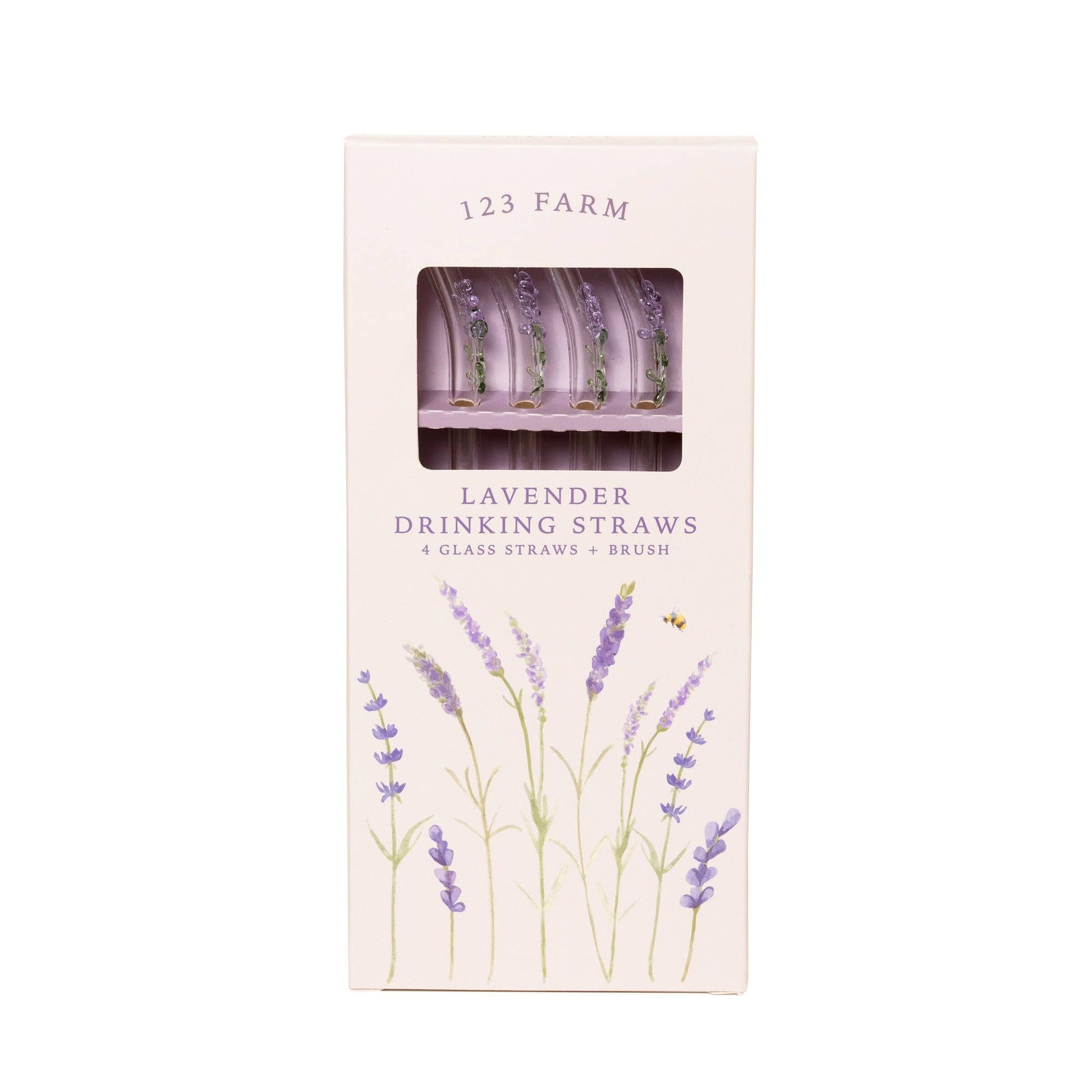 Lavender Drinking Straws – 4 Glass Straws + Cleaning Brush Bring a touch of elegance to your everyday beverages with our bestselling Lavender Glass Straws. Inspired by our organic lavender fields, each straw is adorned with a delicate glass lavender sprig, adding a charming and unique detail.