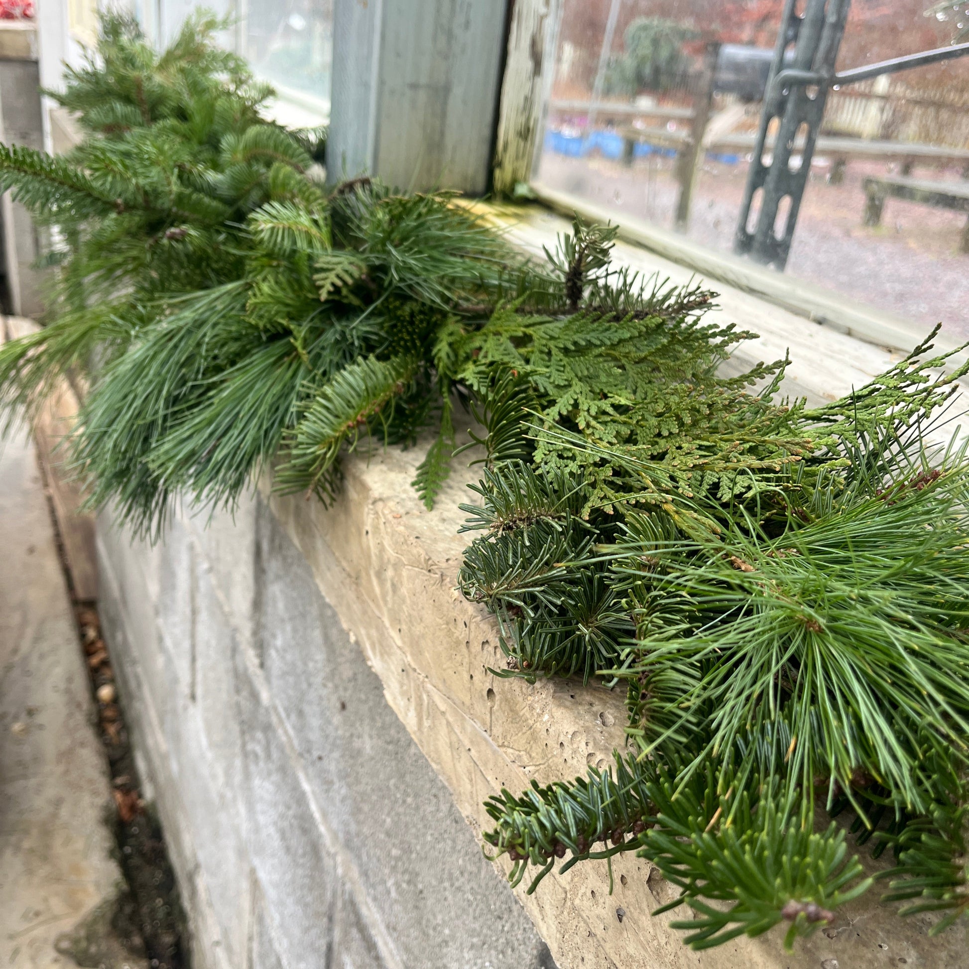 Classic mixed greens roping made using evergreen boughs. Additional holly berries, pine cones, and other décor can be purchased separately and added to any garland. If you would not like holly berries or pine cones on your roping, please specify under "Order Special Requests" at checkout. Bows sold separately.