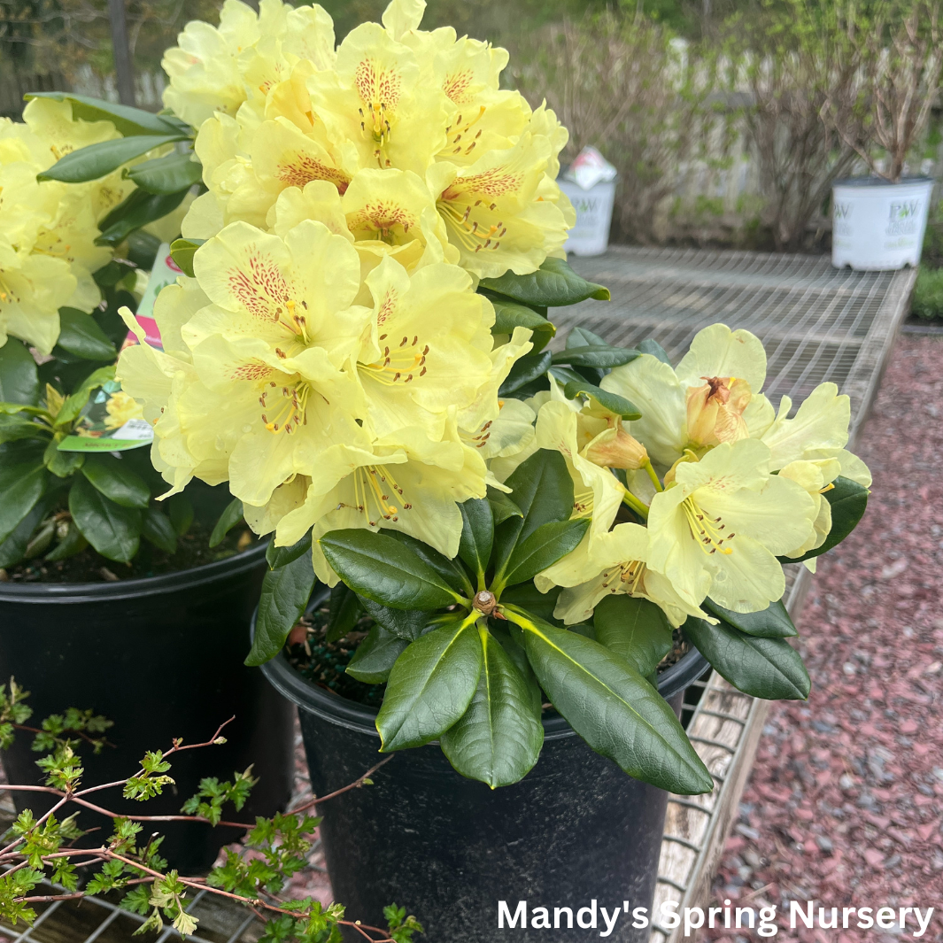Rhododendrons in yellow shades are not very common in home gardens, but they make a great contrast to the pinks and reds of spring.