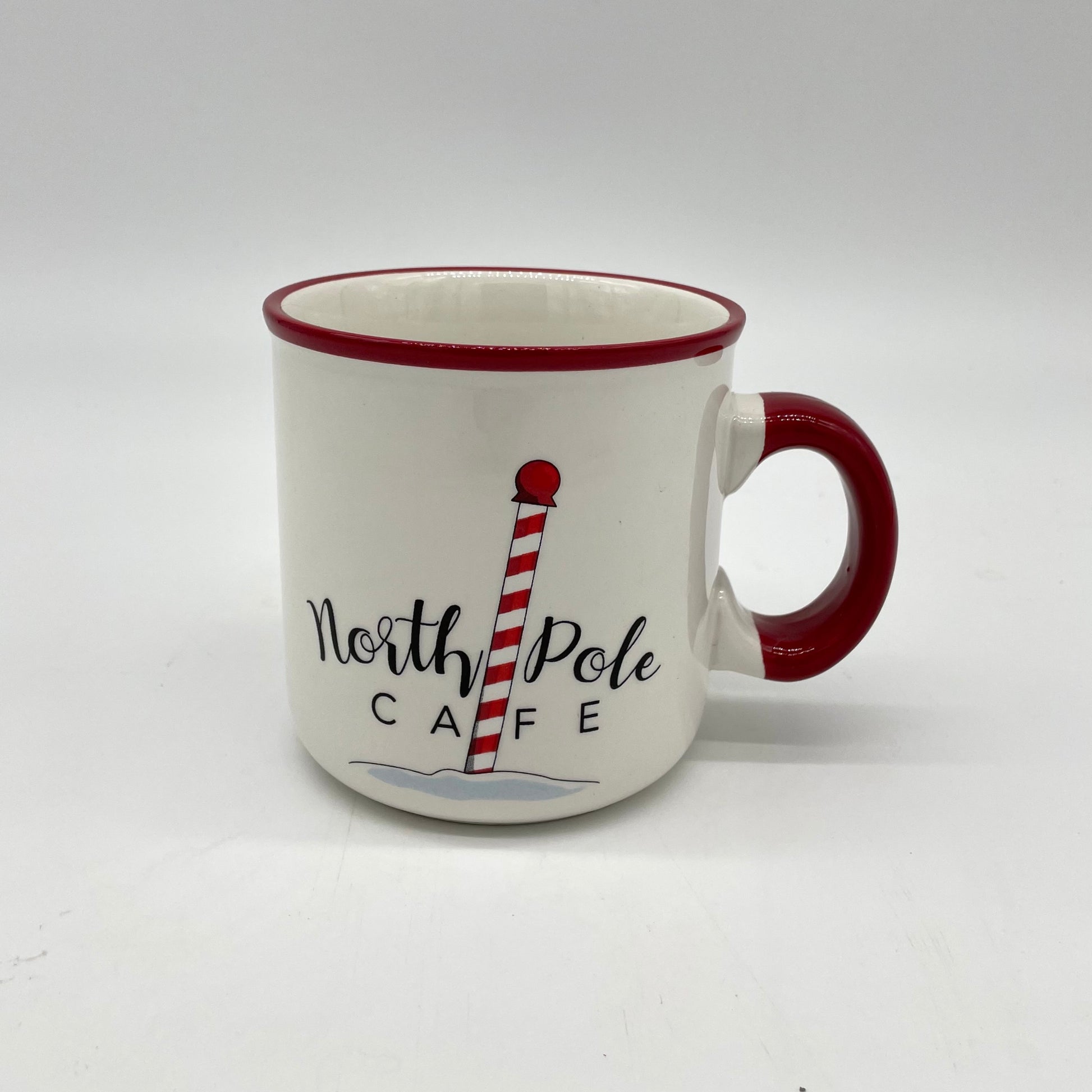 Large North Pole Café mug. Great for flower arrangements or big servings of coffee (with eggnog of course!).