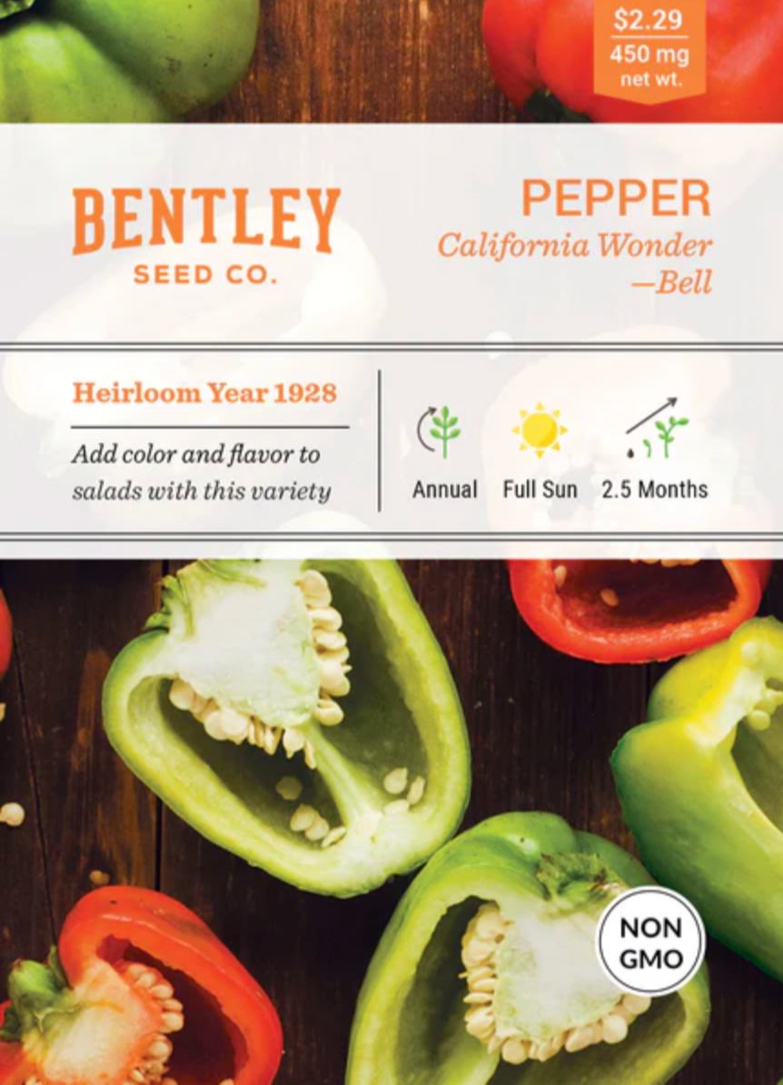 Start Bentley Seed California Wonder pepper seeds inside about 6-8 weeks before last frost date. When first set of true leaves appear transplant to 2" pots. After frost has passed transplant outside in either garden bed or larger containers. Peppers like to be warm so be sure to keep roots mulched.