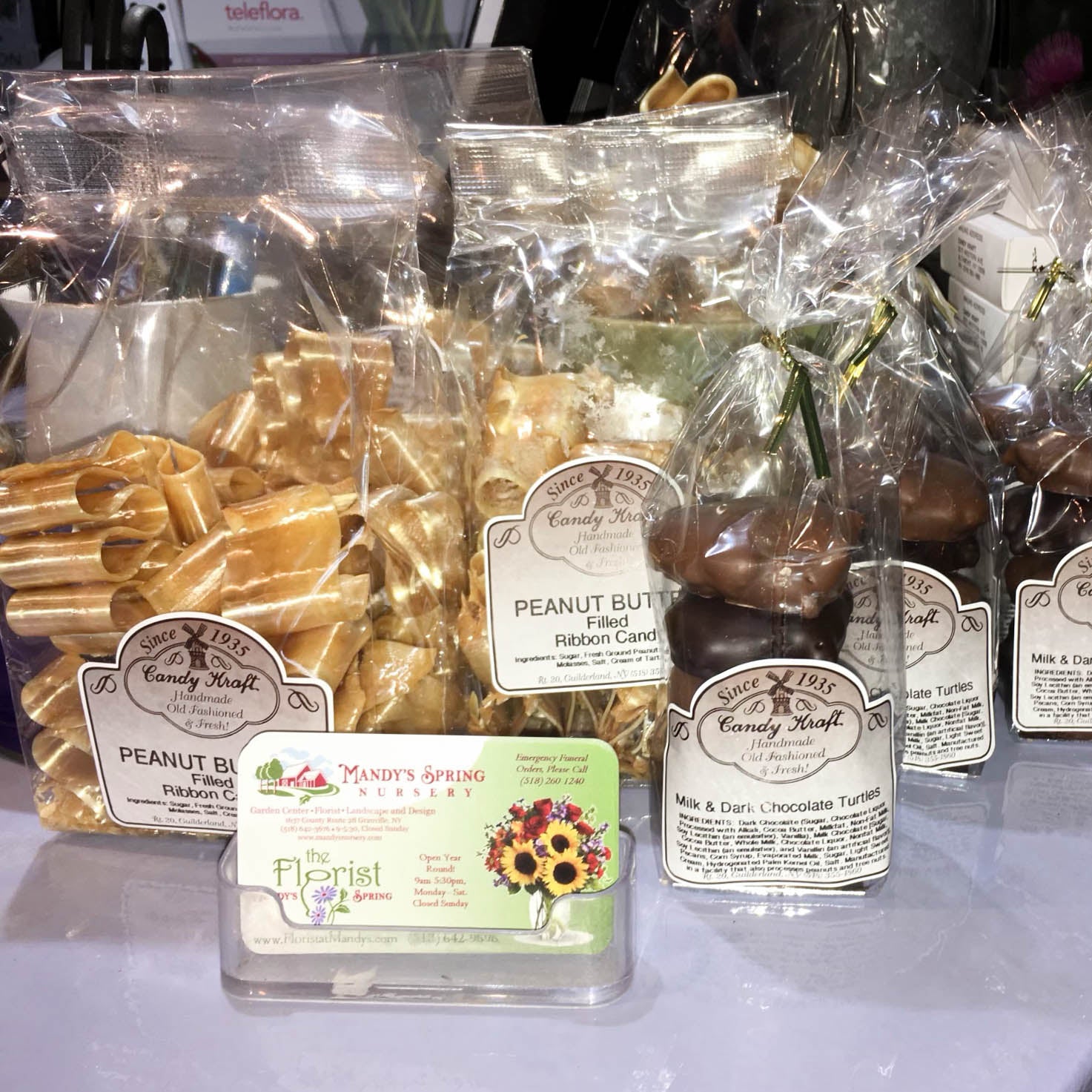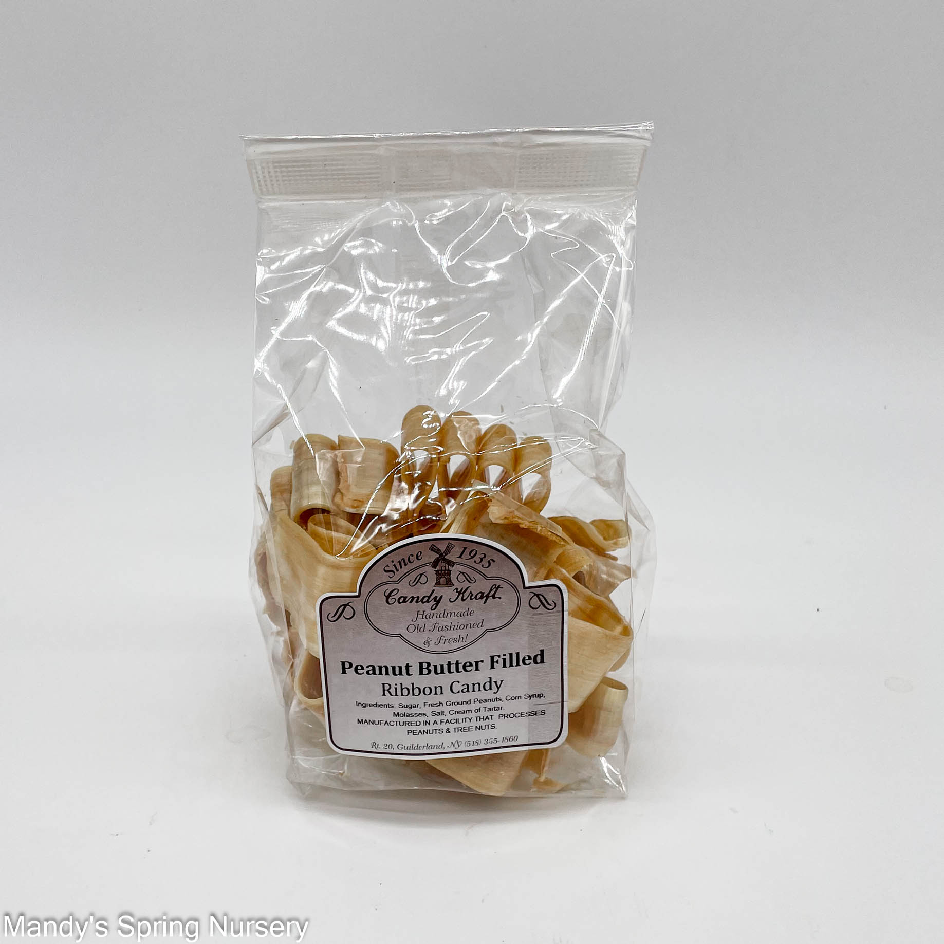 Peanut butter filled, chocolate filled, or assorted ribbon candy. Made locally by Candy Kraft Candies in Albany, New York.