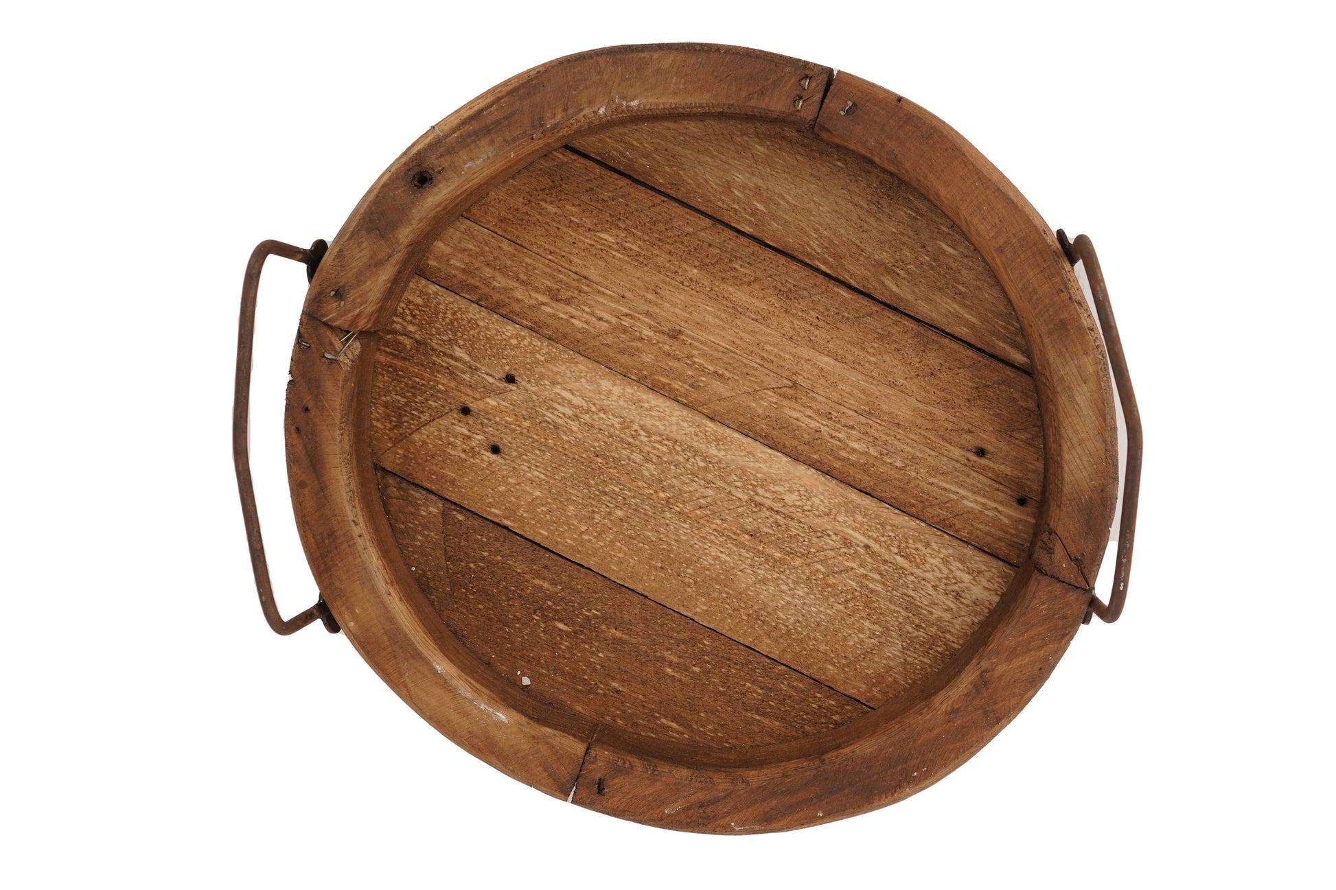 Round Farmhouse-Reclaimed Wood Tray With Handles-12 in-Waxed