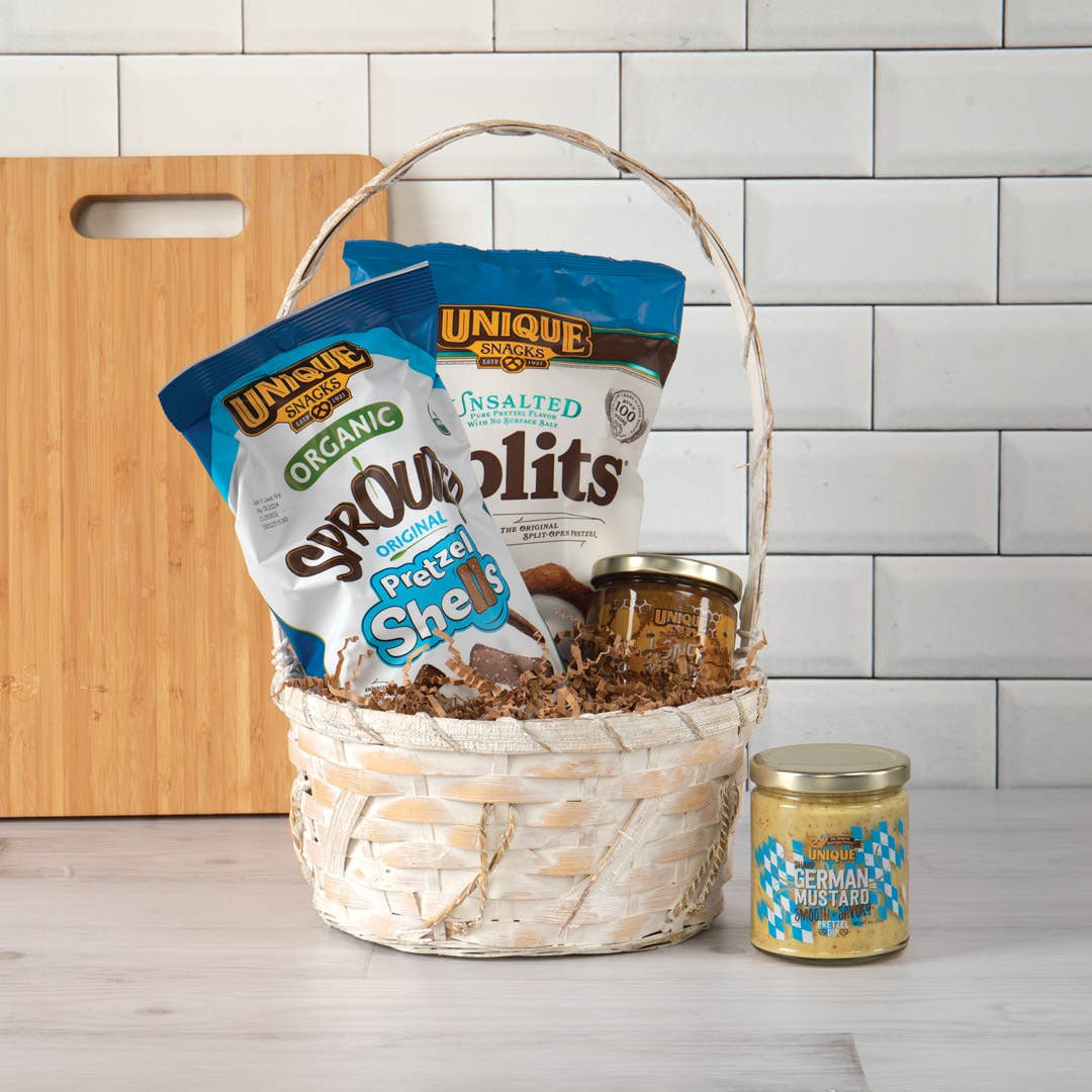 Round White Bamboo Basket w/ Over Handle