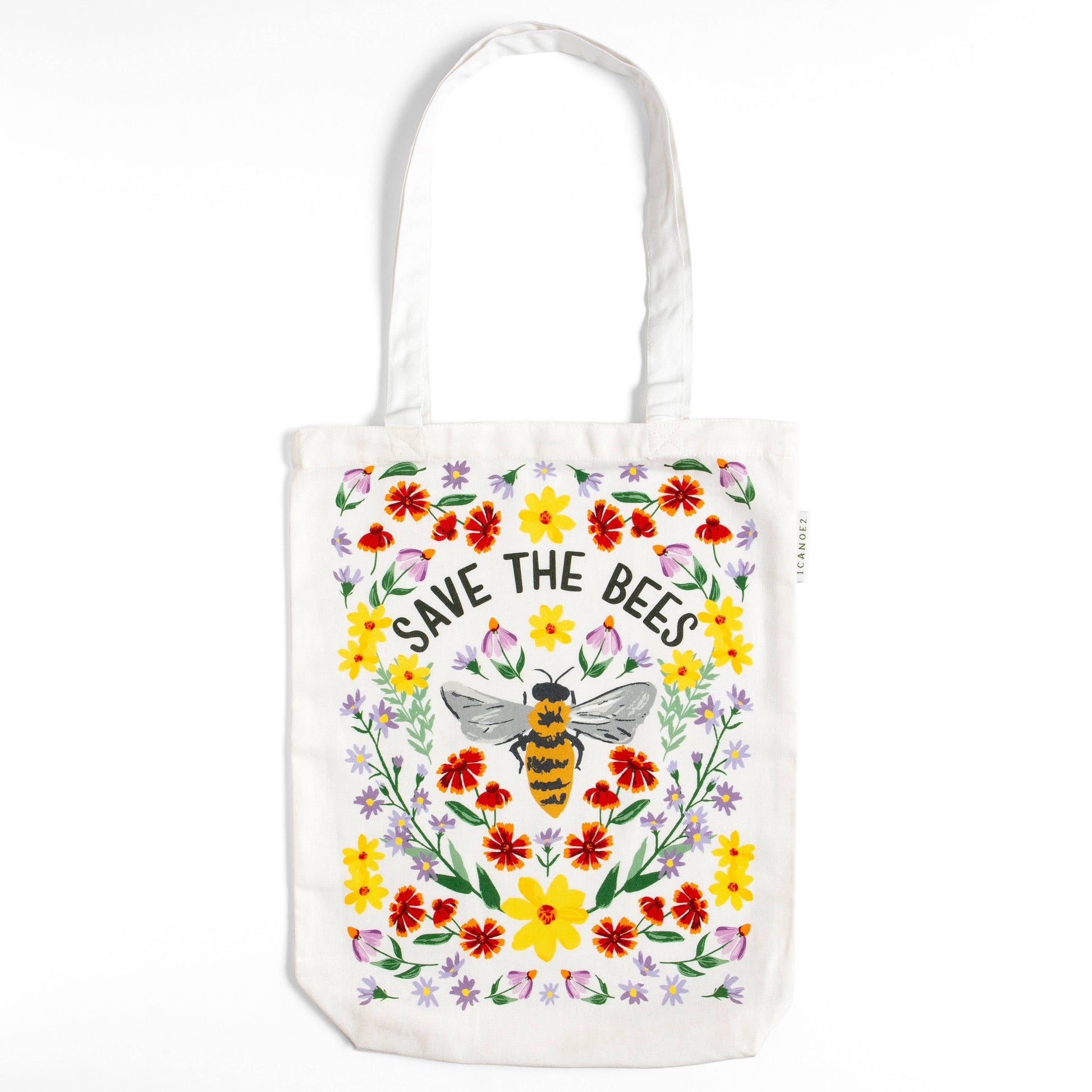 Read moreEmbrace the beauty of nature with our Save the Bees Tote Bag! Adorned with a stunning, hand-illustrated design of colorful wildflowers and a beautifully detailed honeybee, this tote is a must-have for bee enthusiasts, flower lovers, and gardening fans alike. Made from durable, reusable fabric, it’s ideal for everyday errands, market trips, or carrying your favorite reads. Whether you’re a nature lover or just adore vibrant floral artwork, this tote brings a touch of garden charm to your daily adventures! Features | Over-the-shoulder strap, canvas tote bag Material | Cotton Canvas Size | Body: 14×17"; Handle length: 25" Care Instructions | Spot clean with damp washcloth, cold water. Air dry.