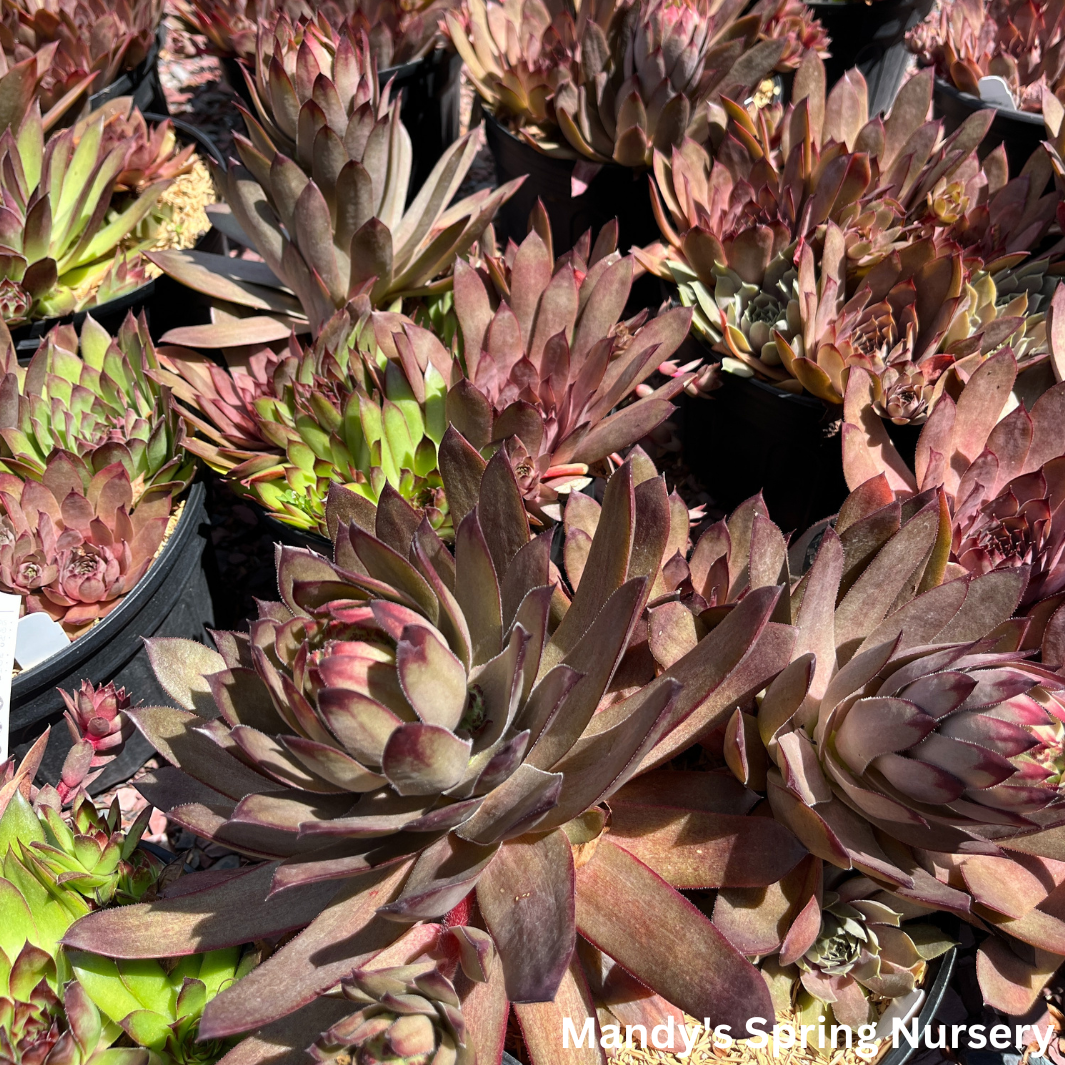Assorted sempervivum. Drought-tolerant and cold hardy. Beautiful in rock gardens of planted in containers.
