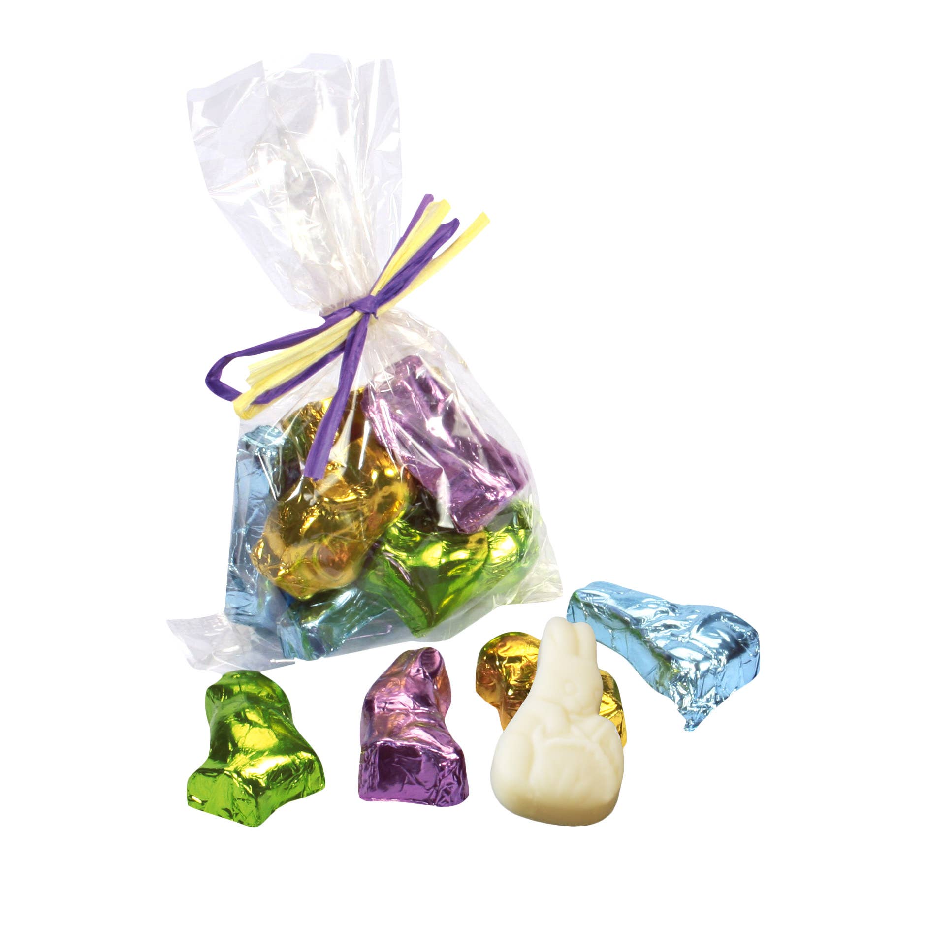 Read moreA bag of eight solid chocolate bunnies, chicks, and ducks, individually wrapped in pastel foils. Available in milk, dark or white chocolate (2.5 oz - 2.8 oz). Made in a peanut and tree nut free facility. School safe. Safe for those with nut allergies.