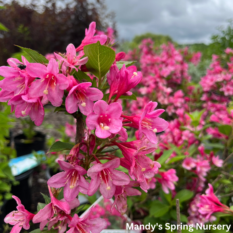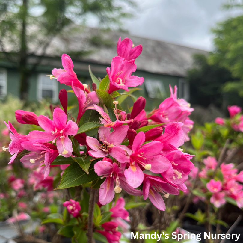 Loads of hot pink flowers in May are followed by waves of blooms until frost. No deadheading is needed to see strong reblooming through summer and fall. Height: 4-5' Spread: 4-5' Shape: Rounded Exposure: Full Sun to Part Shade Foliage: Medium green Fall Foliage: Insignificant Zone: 4-8.