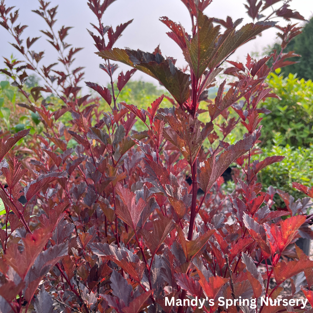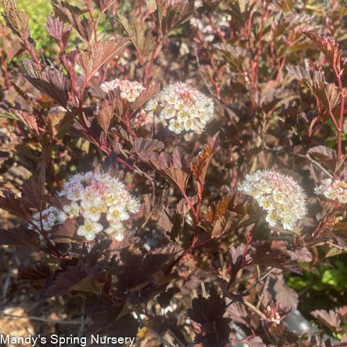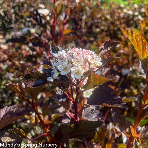 An exciting improvement to Ninebark, Summer Wine combines the fine texture and compact branching of Physocarpus 'Nana' with the dark foliage of Physocarpus Diabolo. Summer Wine is an easy way to introduce wine-colored foliage into the home garden. It is fast-growing and has few, if any, pest problems. Its graceful, arching habit makes it very appealing in the landscape. It adds beautiful color and vibrancy to your garden, especially in spring. In early June it blooms with white button-like flowers that accent the leaves nicely. Pruning and other maintenance is rarely needed. Use it as a bold accent or part of a mixed border. Summer Wine may even be cut for use in arrangements. This is a trouble-free addition to either the home or commercial landscape.