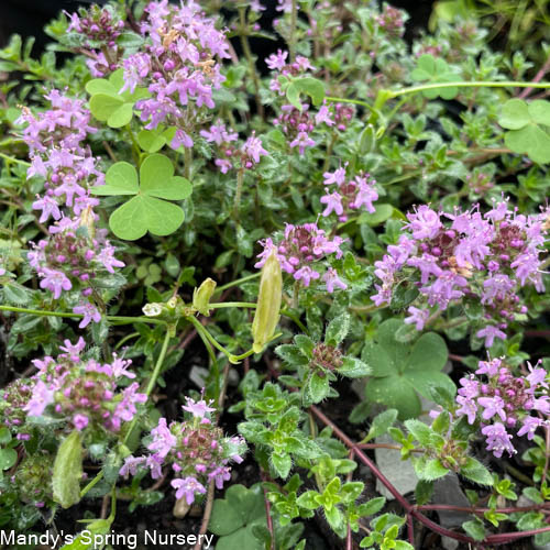 Creeping Thyme is an evergreen perennial herb that boasts stunning clusters of tiny pink, purple, or white flowers that bloom throughout the summer months.