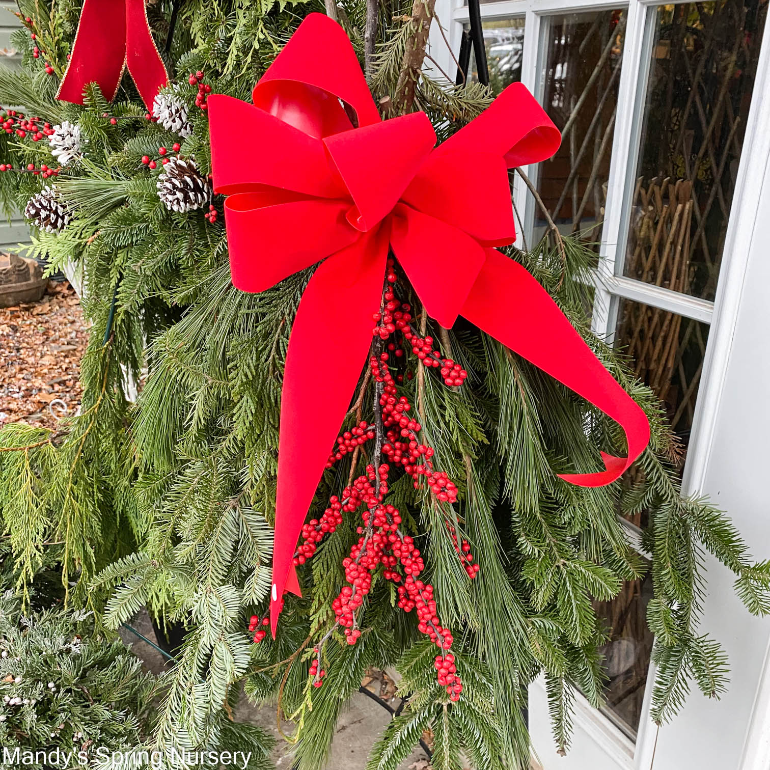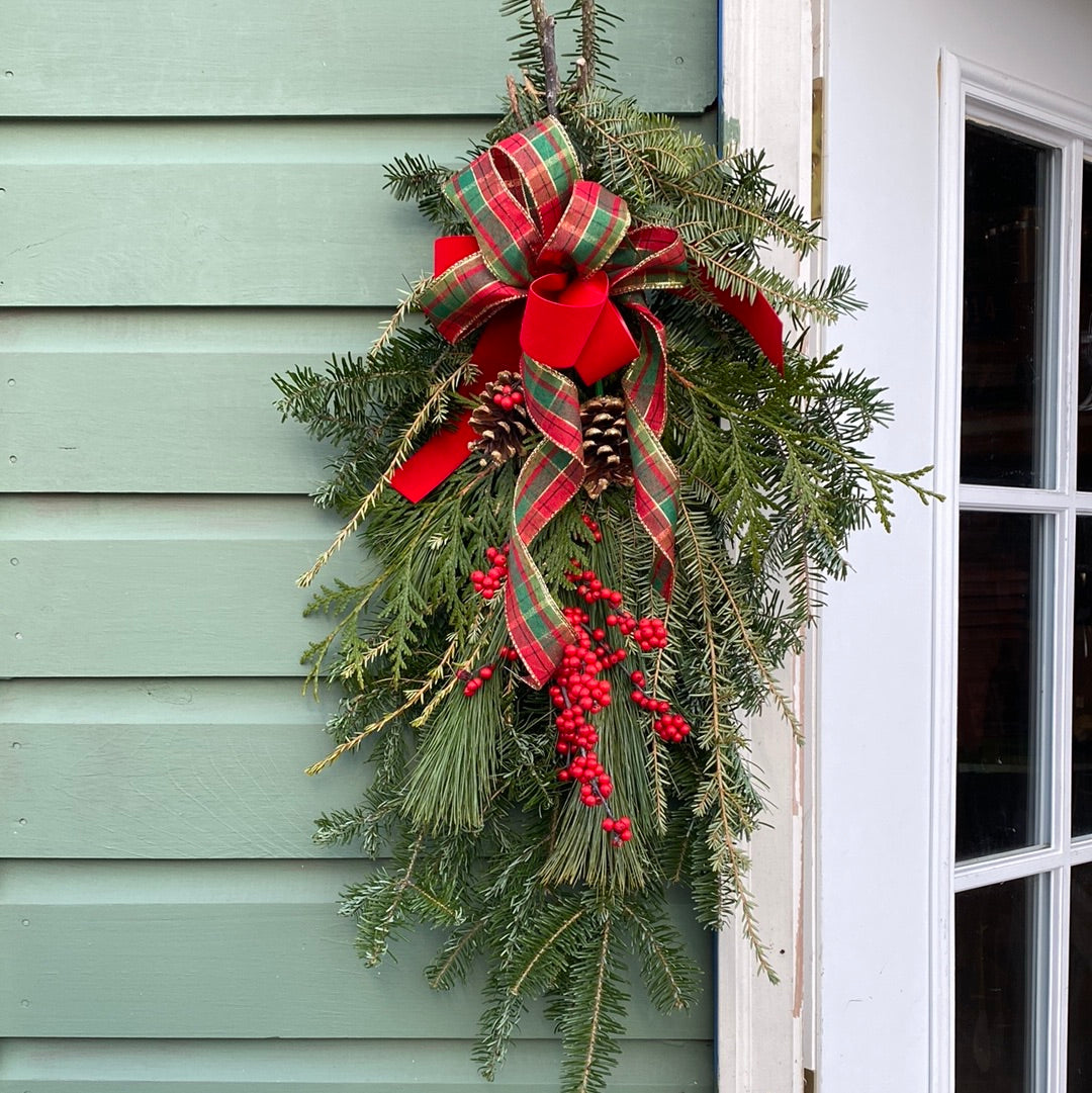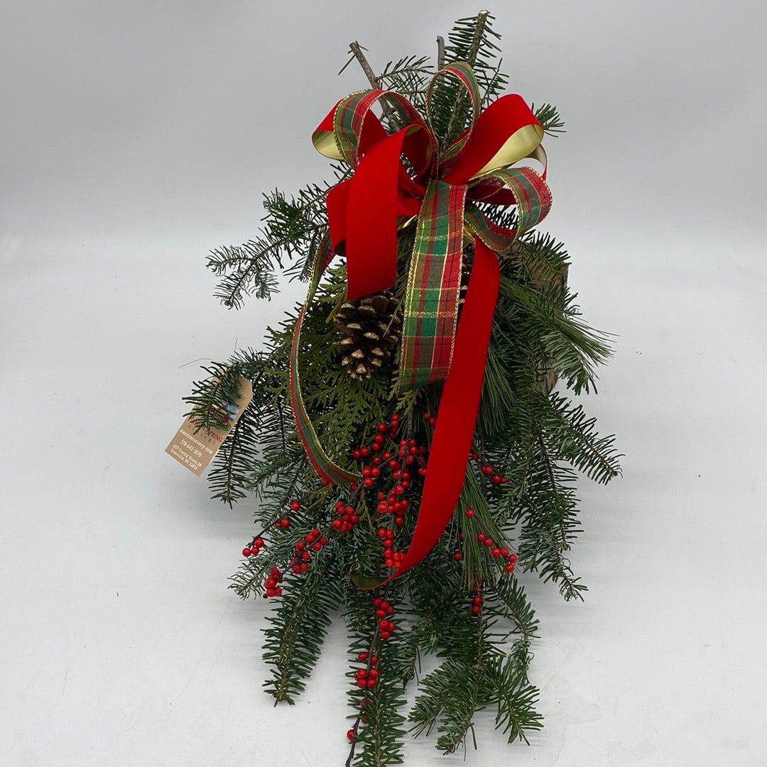 Read more14" vertical mixed greens swag. Classic mixed greens swag made using evergreen boughs, holly berries, and pine cones harvested from our nursery fields. Additional holly berries, pine cones, and other décor can be purchased separately and added to any swag.