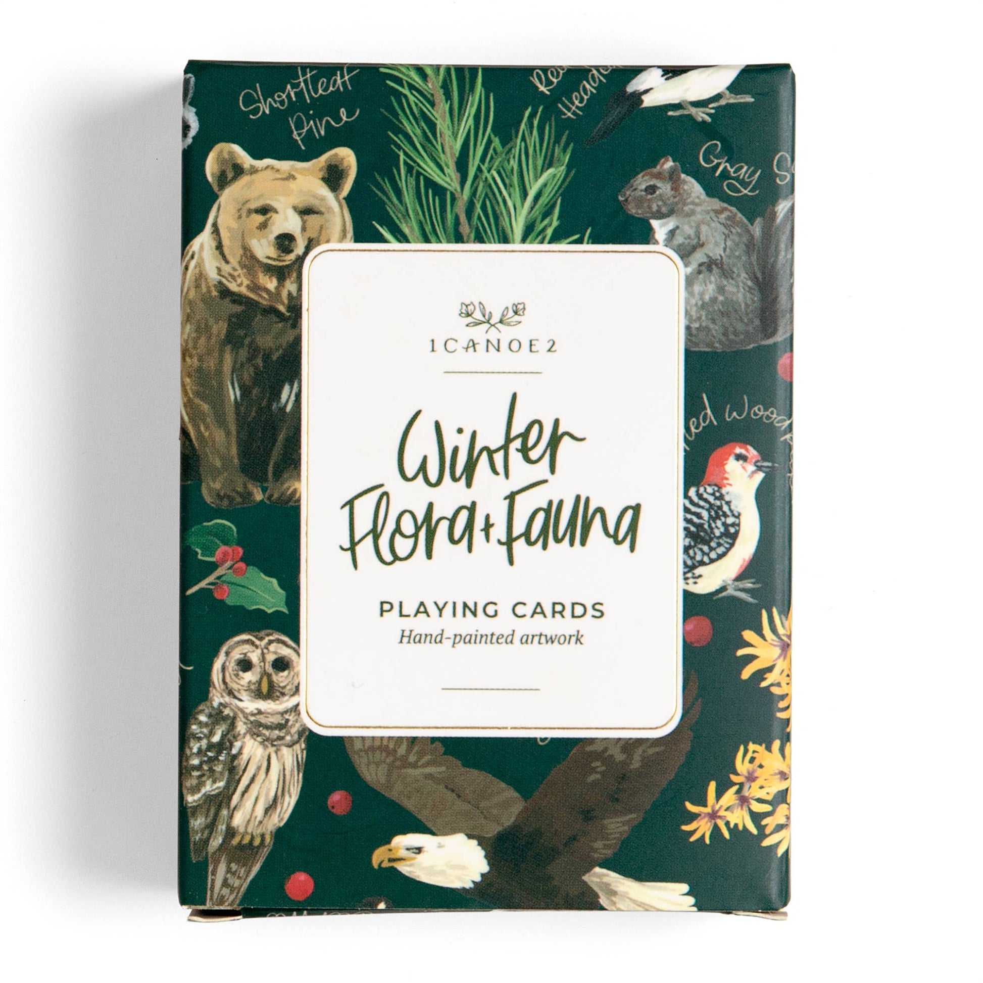 Read moreShuffle up a touch of nature with the Winter Flora & Fauna Playing Cards, a beautifully hand-painted deck featuring woodland animals, birds, and botanical elements inspired by the winter season. This standard 54-card deck is perfect for game nights, stocking stuffers, and gifts for nature lovers. Whether you’re playing poker, solitaire, or a round of Go Fish, these artistic cards bring a festive, wintry charm to every game. Format | Standard 52 card deck Size | 2.6 x 3.6 x 1" Features | Bonus! Extra cards include 2 jokers & dealer card